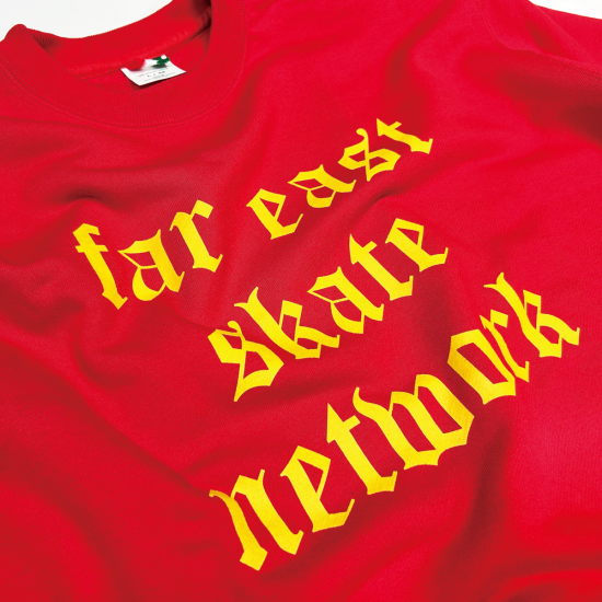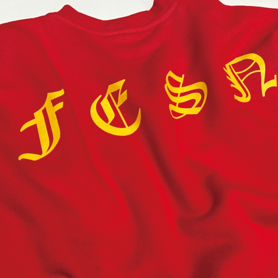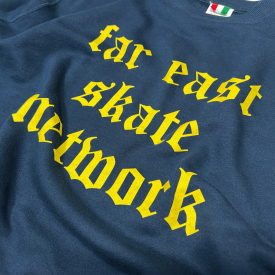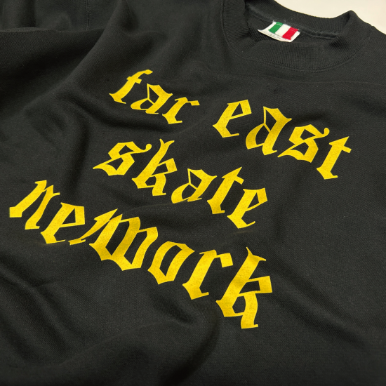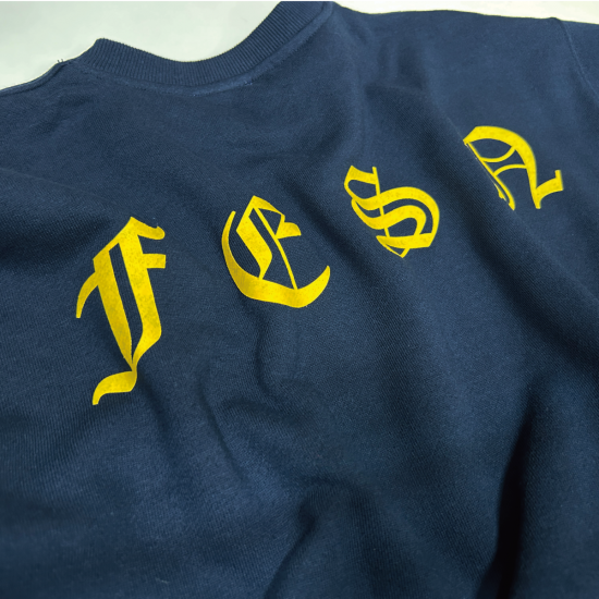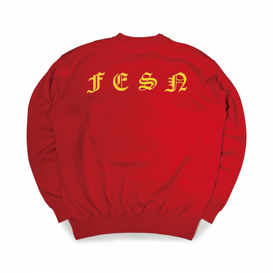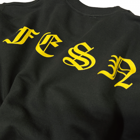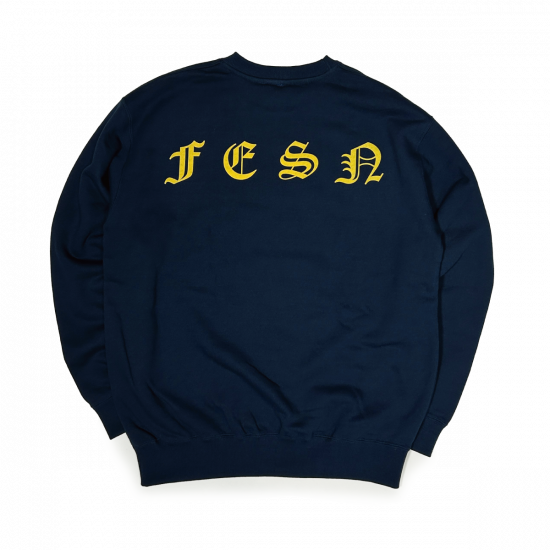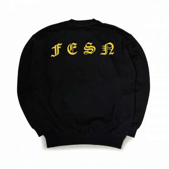フロントとバックにビッグサイズのFESNオールドイングリッシュロゴをイエローカラープリントで施した、インパクト大のFESN新作クルーネックスウェット。