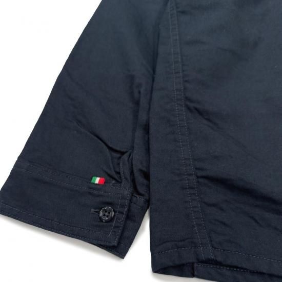 シングルボタンで見せる時はセンターから留める位置がズレるのでそこがこのシャツの面白い所。